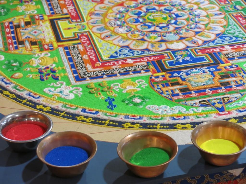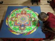 Un mandala de sable, œuvre traditionnelle sacrée du bouddhisme tibétain, est en construction au monastère Chökhor Ling à Haims. Impressionnant. (du 24 au 27 novembre 2014)